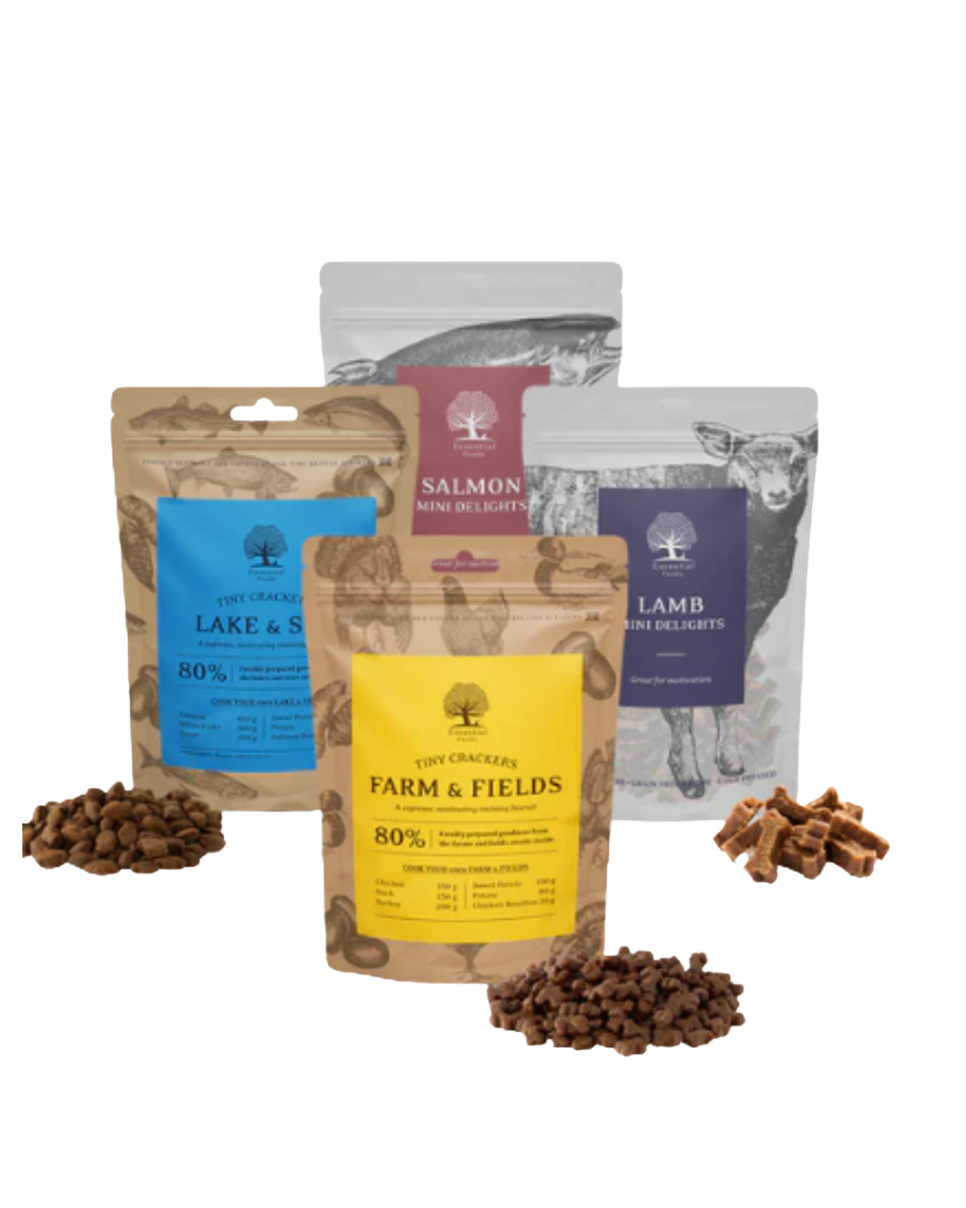 Halfzachte snacks met minimaal 50% eend, lam, zalm of kalkoen. Perfect voor training en kleine beloningen.