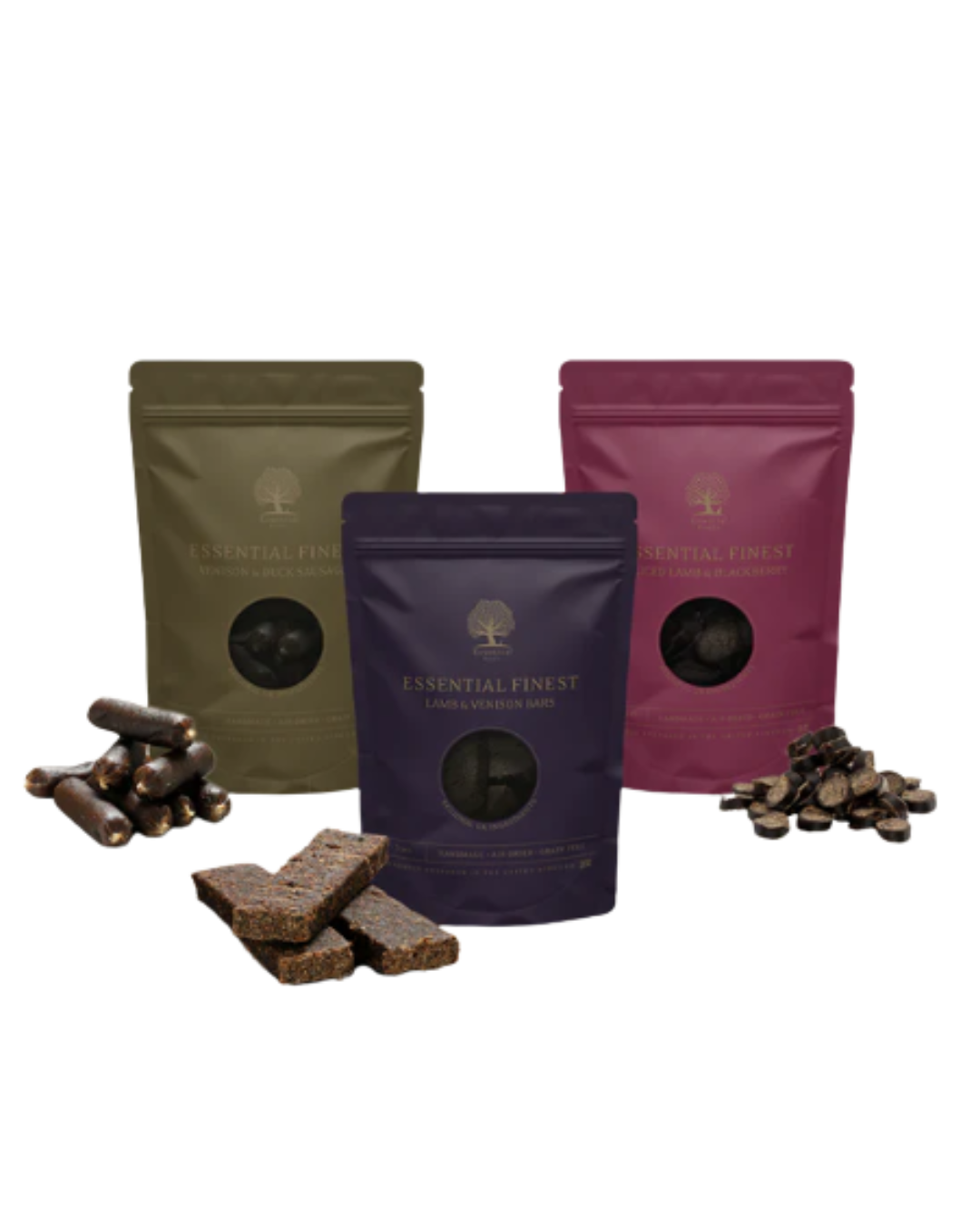 Een variatie van o.a. zalm, rund, lam, eend en hert. Zo is er altijd een smaak die in de smaak valt!