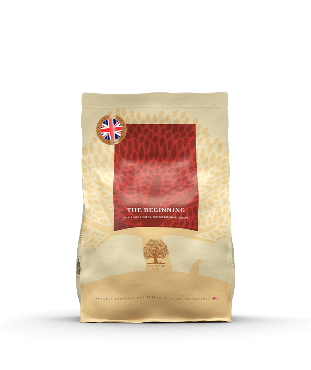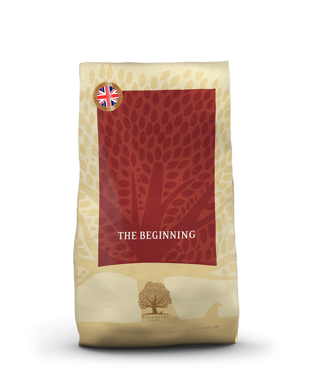 ESSENTIAL THE BEGINNING is specifiek ontwikkeld voor pups en jonge honden die als volwassen hond minder dan 15 kg gaan wegen. Het is een unieke maaltijd die bereid is met Britse scharrelkip, vrijlopende Britse eend, Schotse wild en verantwoord gekweekte zalm, Salisbury regenboogforel en verse ei.